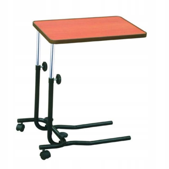 Stolik przy łóżku chorego. Stolik przyłóżkowy umożliwia osobom chorym wykonywanie w łóżku codziennych czynności jak jedzenie posiłków czy czytanie książek. Stolik posiada możliwość regulacji zarówno pochylenia podstawy jak i samego blatu a także wysokości. Stolik pomocny jest w spożywaniu posiłków a także dodatkowo umożliwia.